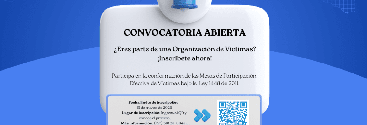 Convocatoria para la conformación de las Mesas de Participación Efectiva de Víctimas bajo la Ley 1448 de 2011 DESCARGA AQUÍ EL FORMULARIO DE INSCRIPCIÓN